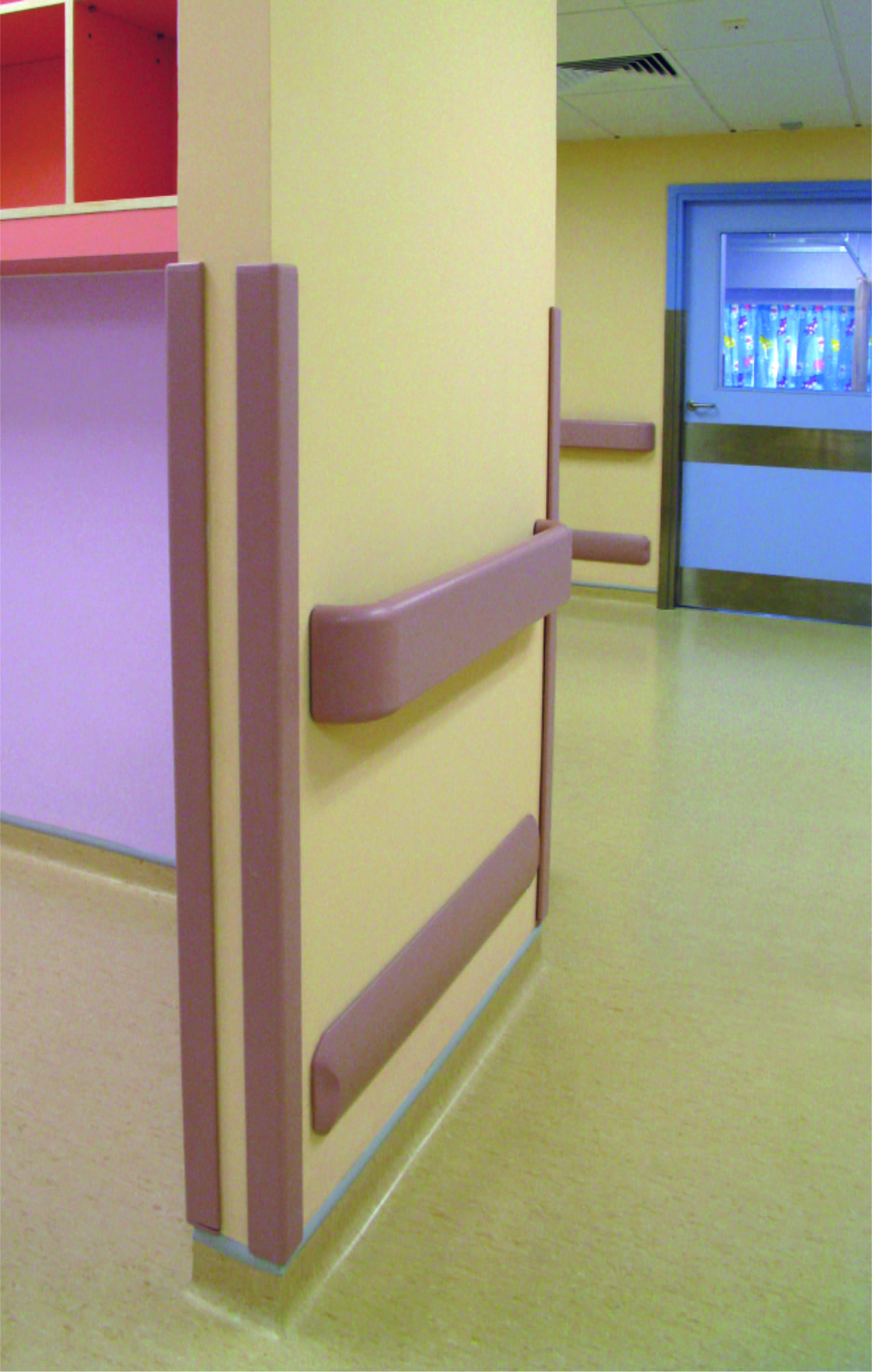 Nárazové madlo je tvořeno nosným hliníkovým profilem, na jehož povrch je nasazen ochranný polykarbovátový kryt tloušťky 2mm. Mezi hliníkovým profilem a polykarbonátovým krytem je deformační profil zajišťující tlumení nárazů. Povrch madla je mírně strukturovaný; max. délka jednoho kusu je 6 m; obsahuje koncovky, nosné konzoly a montážní příslušenství. Barva madla dle vzorníku.